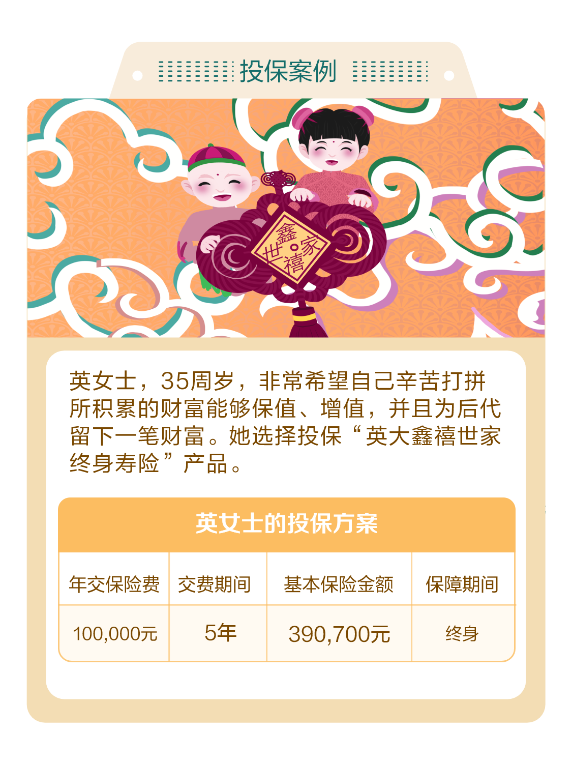 风险提示:以上内容为产品简介,详情请以《英大鑫禧世家终身寿险保险》条款为准。